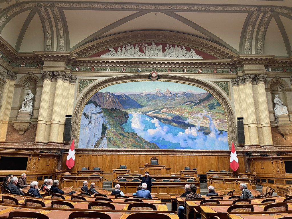 Ein weiterer Höhepunkt war der Besuch im Nationalratssaal: Dort zu sitzen, wo sonst über Gesetze debattiert und entschieden wird, war für viele ein ganz besonderer Moment. Auch die kunstvollen Wandgemälde, die Szenen aus der Schweizer Geschichte zeigen, sorgten für Staunen und einige Fotostopps.