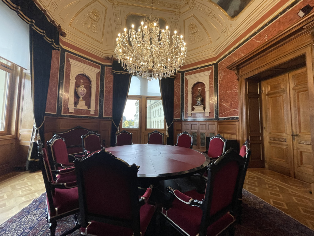 Schon beim Betreten beeindruckte das Gebäude mit seiner Architektur, den kunstvollen Details und der besonderen Atmosphäre. Frau Schneeberger erzählte nicht nur über die Geschichte und Bedeutung des Hauses, sondern auch über aktuelle Themen, die im Parlament diskutiert werden.