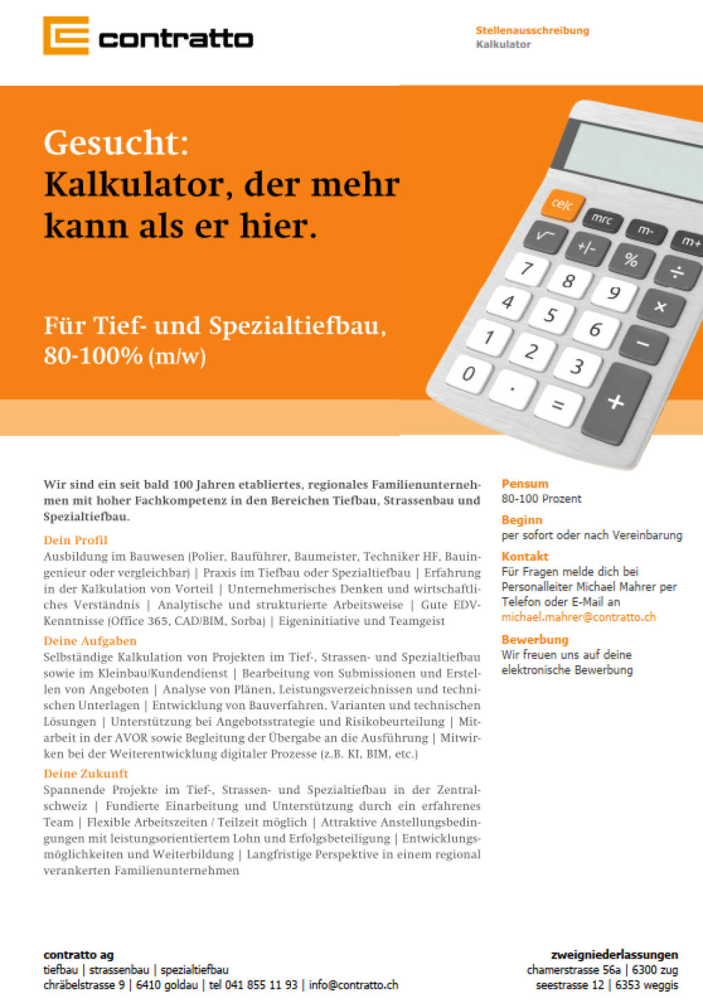 Kalkulator - Tief- und Spezialtiefbau 80- 100% (m/w)